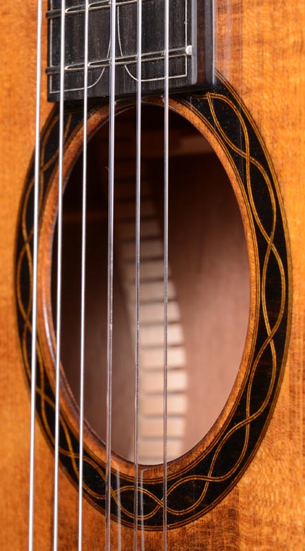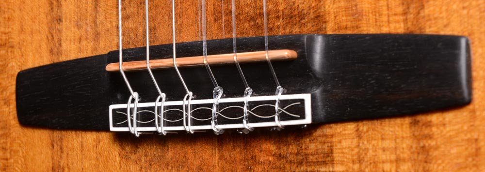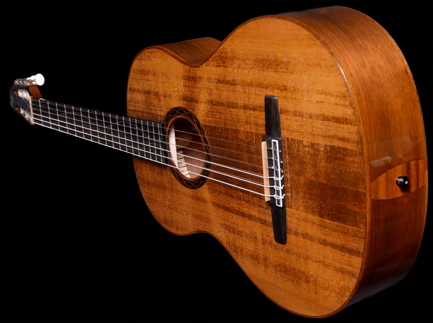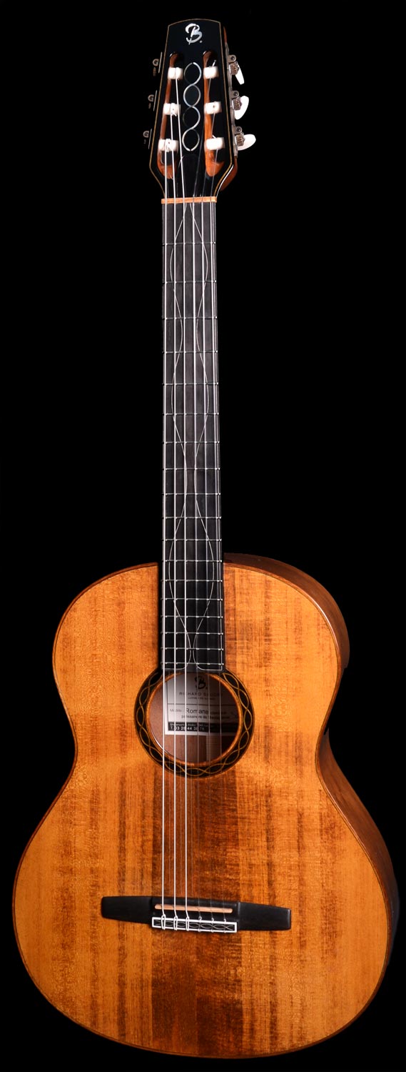 Guitare classique modèle Romane Fond et éclisses palissandre de Madagascar Table épicéa sitka Touche, plaquage de tête et chevalet en ébène Sillets ivoire de Mammouth Mécaniques Rubner platine laiton vieilli Bouton ivoroid Incrustation sur la tête nacre noire et blanche Largeur sillet : 51mm Diapason : 660mm Poids : 1865 g Vidéo avec Bruno Mursic Modèle disponible à l'atelier 5000 € |