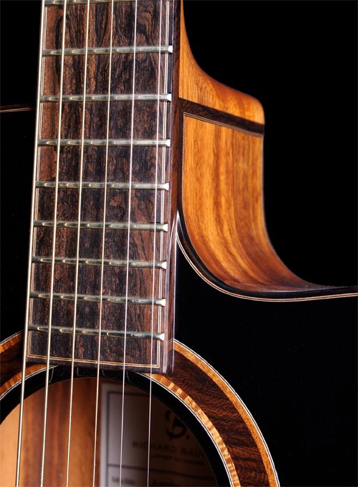 Fond et éclisses Goncalo Alves Table épicéa sitka Manche acajou du Honduras Touche, chevalet et fileterie ziricote Plaquage de tête goncalo alves Rosace ziricote et koa ondé Largeur sillet : 44 mm Diapason : 645 mm Poids : 2100 g Guitare disponible à l'atelier destockage -20% 4200 € - 20% 3600 € Vidéo "laguitare.com" |