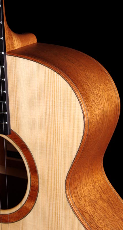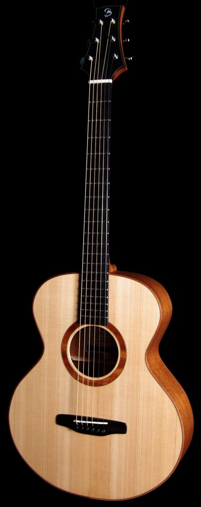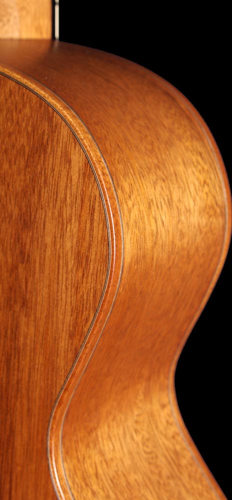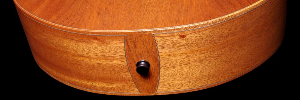 "petite Jumbo" en flamand acajou Fond et éclisses acajou du Honduras Table épicéa du Jura Manche acajou du Honduras Touche, chevalet et plaquage de tête ébène Fileterie et rosace acajou du Honduras Sillets os Mécaniques Schaller "Grand Tune" Lageur au sillet : 45 mm Diapason : 645 mm Poids : 1750 g Vidéo par Brice Delage Guitare disponible à l'atelier 2900 € |