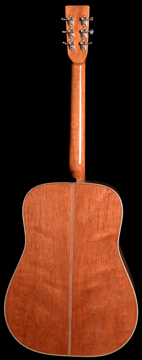 "La Dread Note" Fond et éclisses en palissandre de Madagascar Table épicéa Sitka Manche acajou du Honduras Touche, plaquage de tête et chevalet ébène du Gabon Fileterie érable ondé + herringbone Sillets os Mécaniques Schaller "Grand tune" Largeur au sillet : 44 mm poids 2200g disponible à l'atelier voir la video |