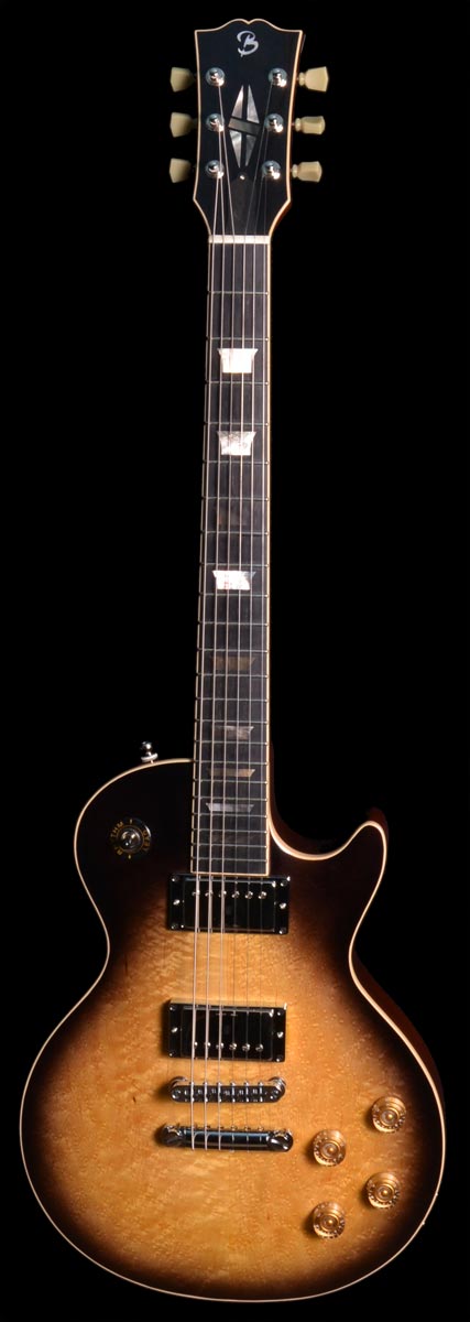 Corps et manche acajou du Honduras Touche et plaquage de tête ébène africain Incrustation nacre noire Table érable moucheté Mécaniques Schaller Set micro Benedetti Rawbucker
