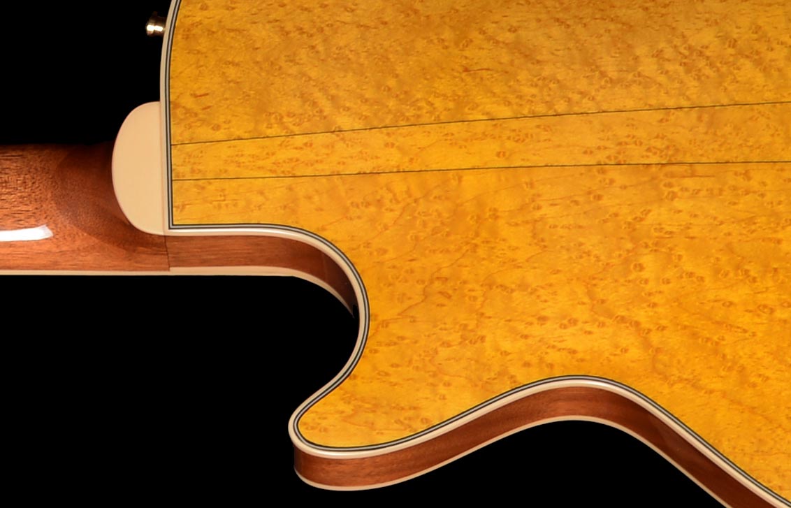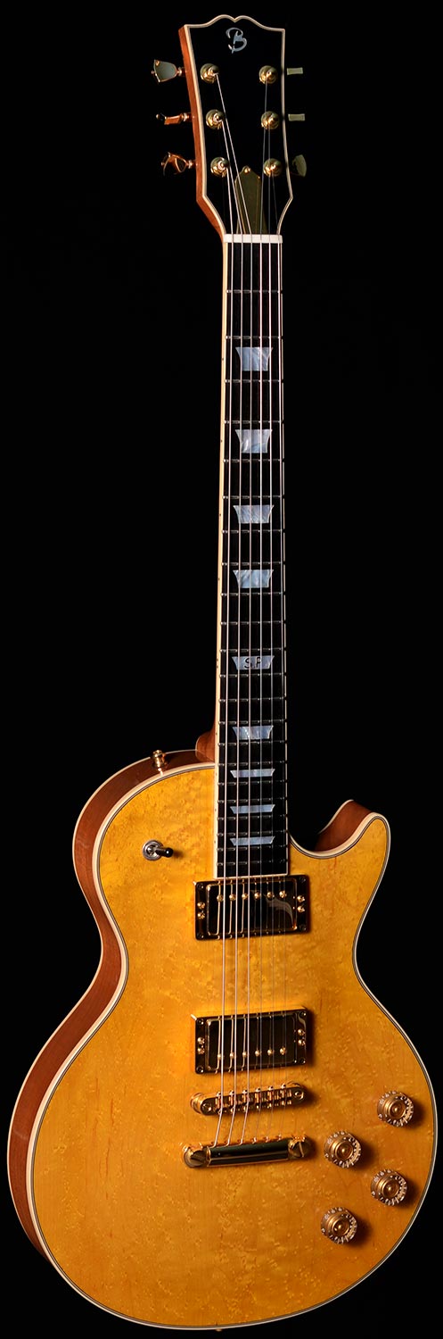 Pour Stéphane PAULUS corps et manche en acajou du Honduras Table érable moucheté barre de réglage double action touche et plaquage de tête ébène incrustation nacre blanche diapason 639mm micros Benedetti Rawbucker mécaniques Grover |