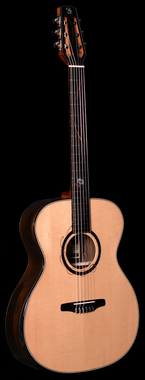 N°122 Fond et éclisses ziricote Table épicéa sitka Manche acajou du Honduras Touche et chevalet ébène du Gabon Fileterie ébéne Rosace ziricote Mécaniques Schaller Grand Tune Armrest en ébène Largeur au sillet : 48mm Diapason : 660 mm Poids : 2000 g ![]() |